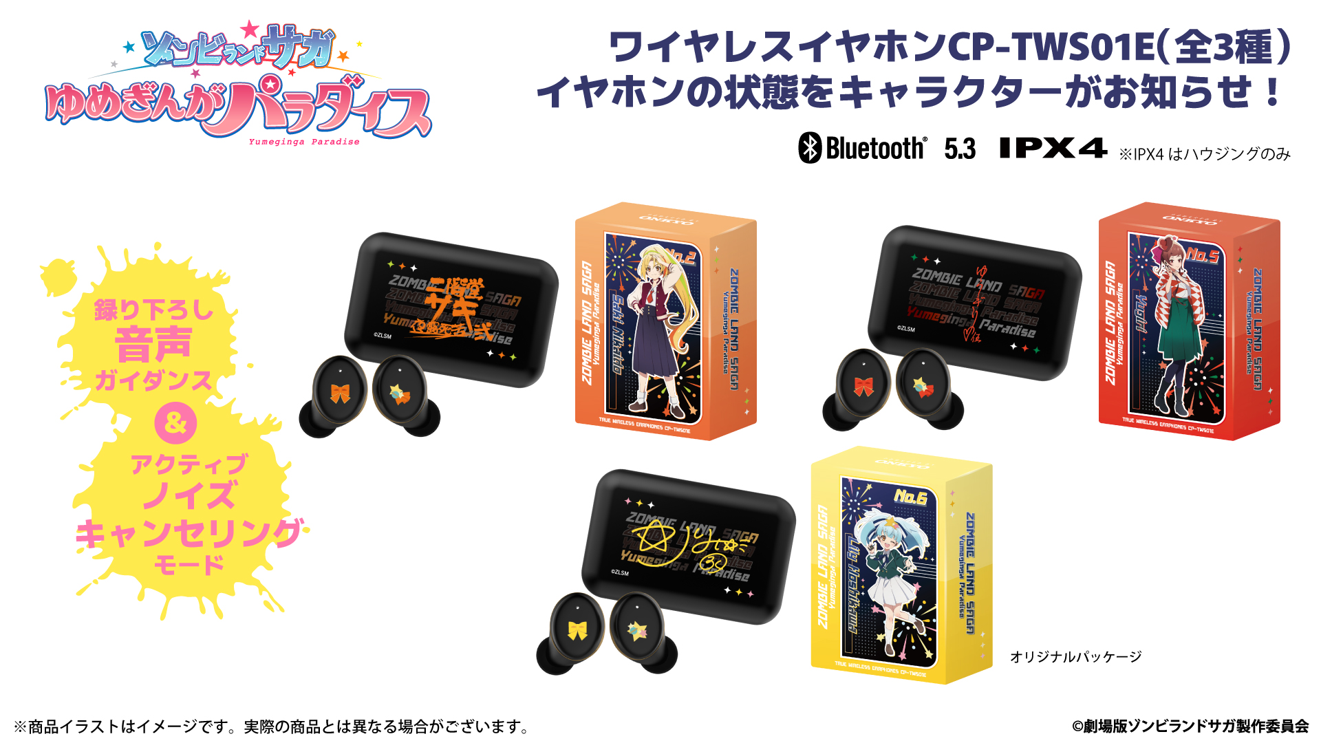 オンキヨー株式会社は、コラボ第2弾として新機種ANC(アクティブノイズキャンセリング)搭載完全ワイヤレスイヤホン「CP-TWS01E」と劇場版『ゾンビランドサガ ゆめぎんがパラダイス※1』とのコラボレーションモデルを、4月3日(金)15時より受注販売いたします。