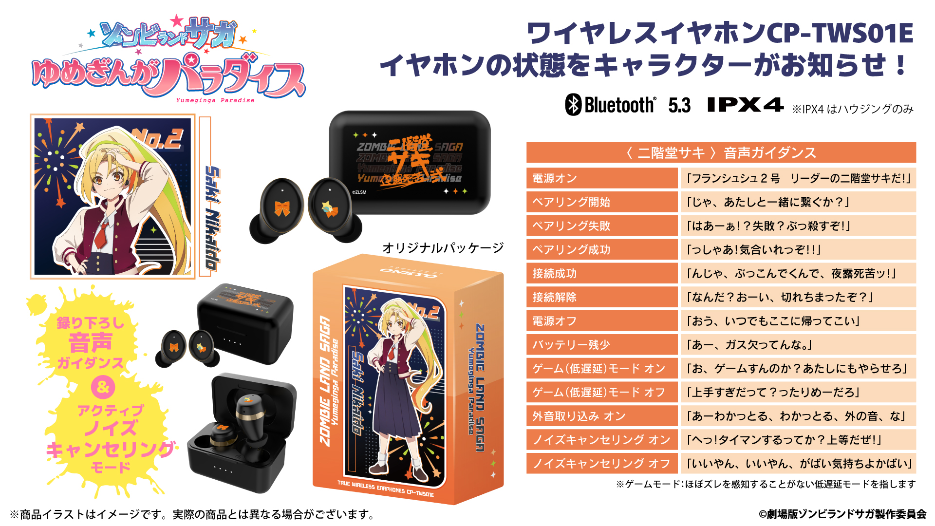 劇場版『ゾンビランドサガ ゆめぎんがパラダイス』より、録り下ろしボイスを搭載した コラボレーションANC(アクティブノイズキャンセリング)ワイヤレスイヤホン第2弾が登場!!